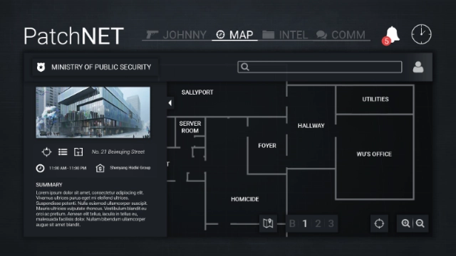 Because of the themes and subject matter, designing the game’s UI presented a challenge: it needed to communicate a large volume of information quickly, without overwhelming the player. Moreover, both the main menu and in-game menu had to visually explore the dark, and often complex, work of spycraft.