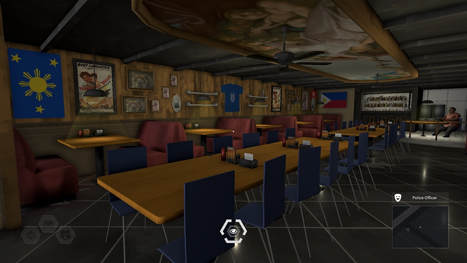 (Jovito’s Bar, as portrayed in the HUD screenshot, is an early prototype location made primarily with ProBuilder in Unity)patchnet (in-game menu)