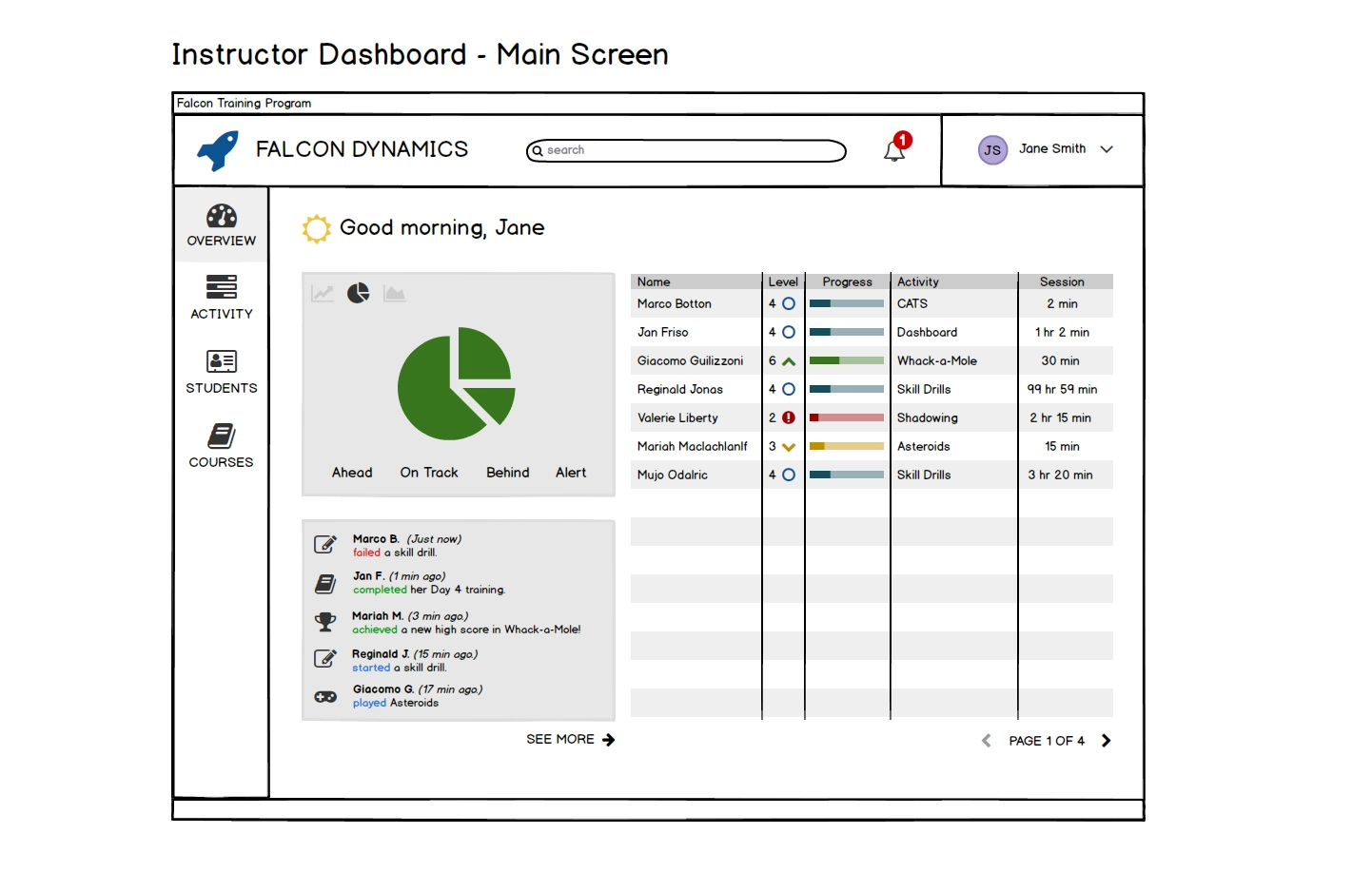 In early Fall 2017, I was contracted by Filament Games to design the UI for a game-based trainipngng program. In preparation for working on the interface, the lead designer and I engaged in rigorous user research and authored surveys directed towards our target audience (instructors and students).