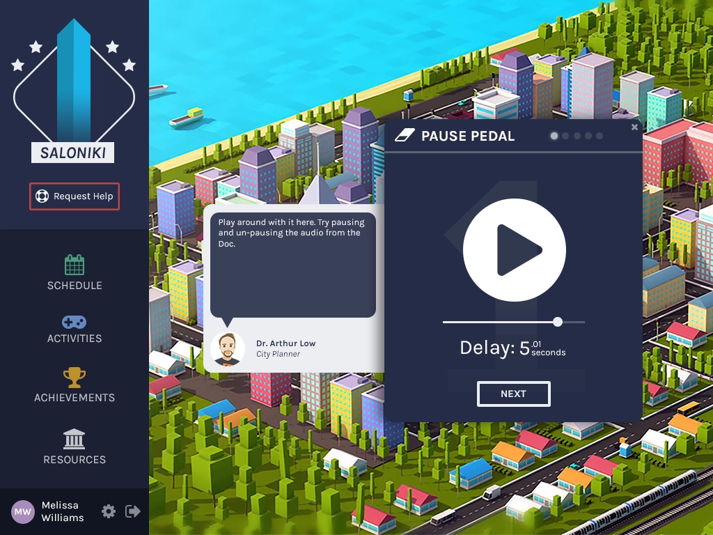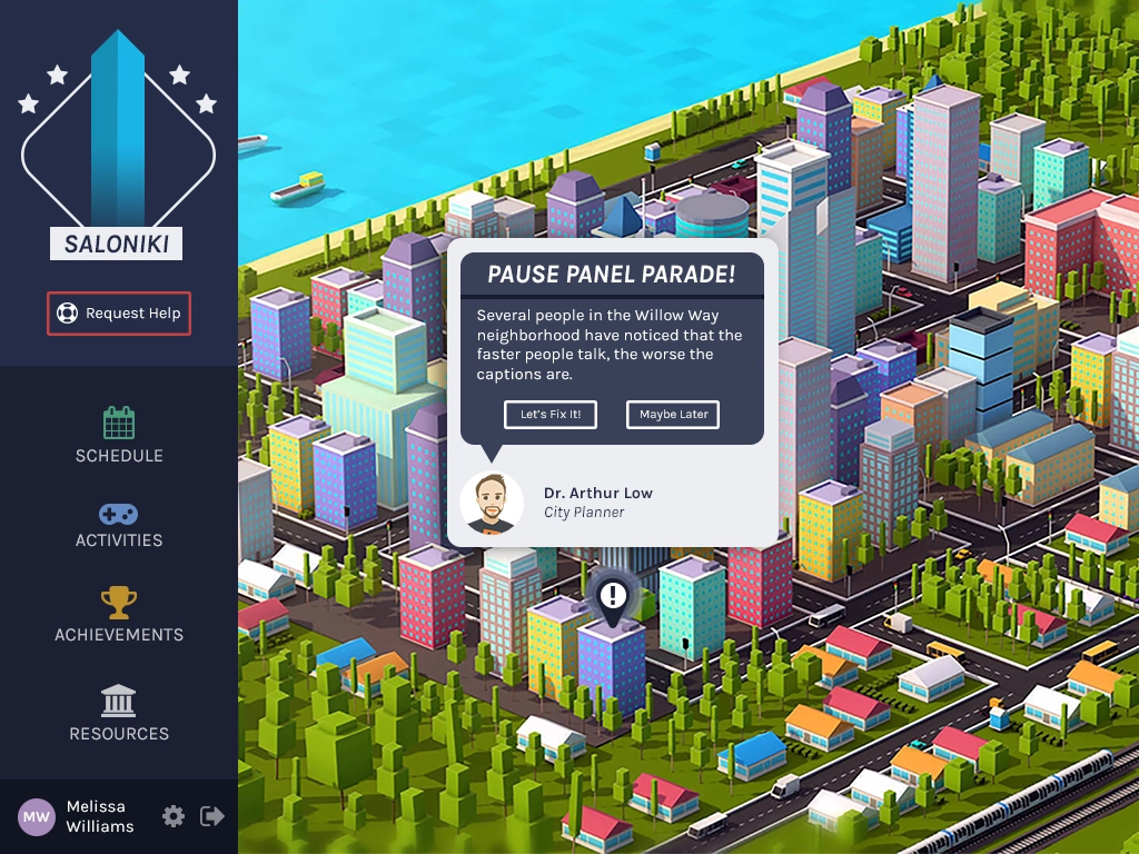 We ultimately chose to frame the training program as a city building game. As the student accomplished certain objectives, more of the city unlocked and their small town would evolve into a sprawling metropolis. Much to our delight, Filament’s client was incredibly excited by this proposal.