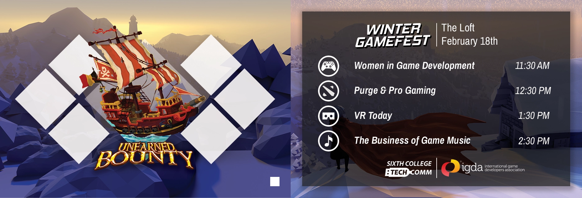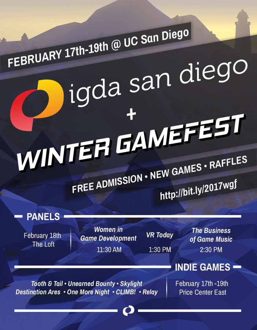 As an organizer for the San Diego Chapter of the International Game Developers Association, I was involved in organizing a wide variety of events in service of the local gaming community. I primarily spearheaded the chapter’s presence at Winter GameFest, the largest competitive gaming event in the city. I organized the panels, which cover a variety of topics, as well as an indie games booth that showcased the work of talented developers throughout San Diego.